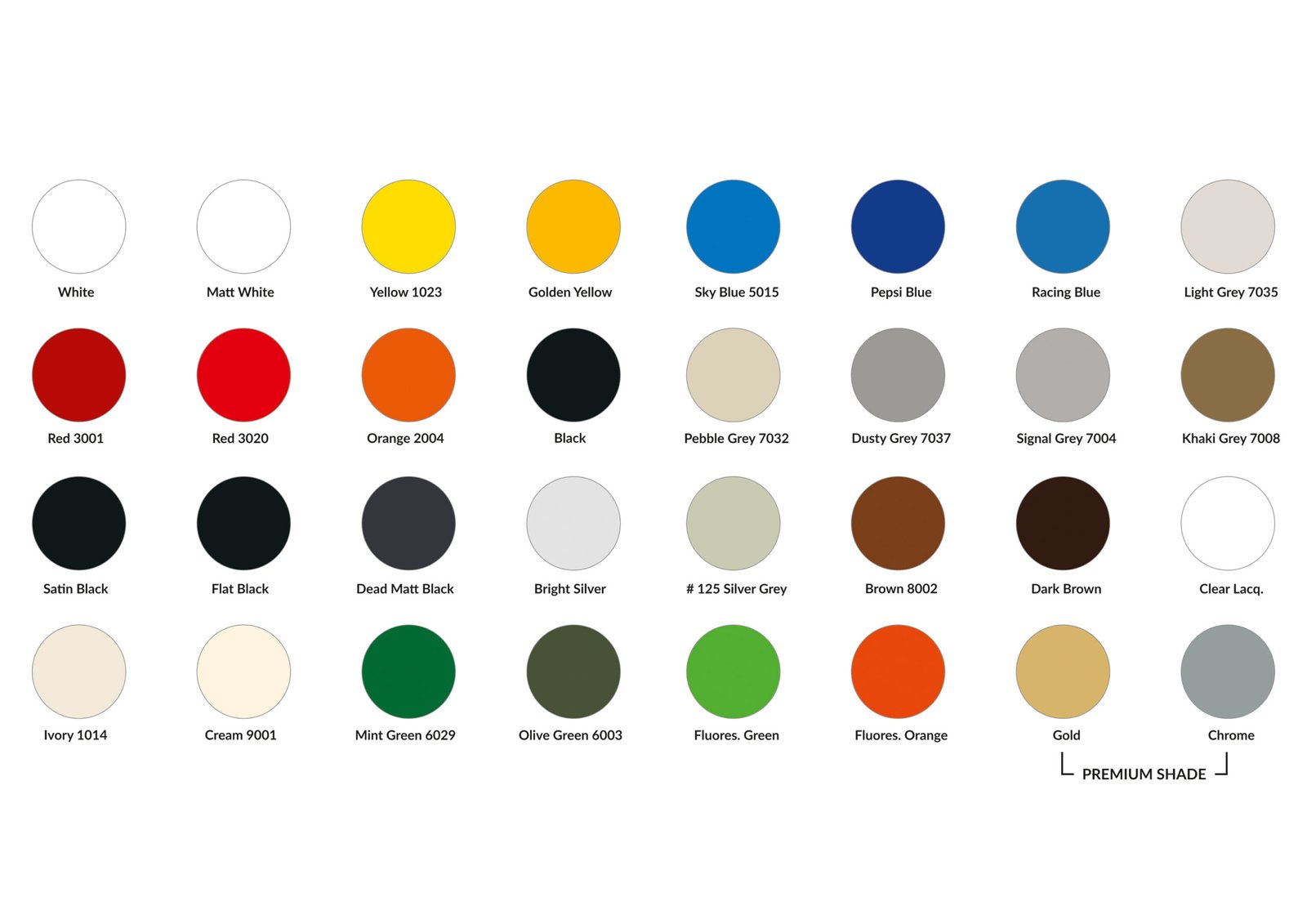We have got you covered with all the standard shades which you might require